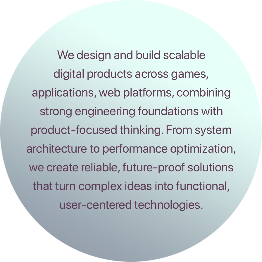 We build end-to-end experiences: discovery & product strategy, UI/UX design, engineering, QA, and release management. Whether you’re launching a new game, modernizing an existing platform, or building a mobile app from scratch, we focus on performance, maintainability, and a clean user experience.